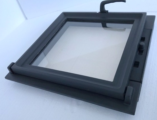 - geam termorezistent Schott - Robax rezistent la temperatura de 750 grade Celsius .